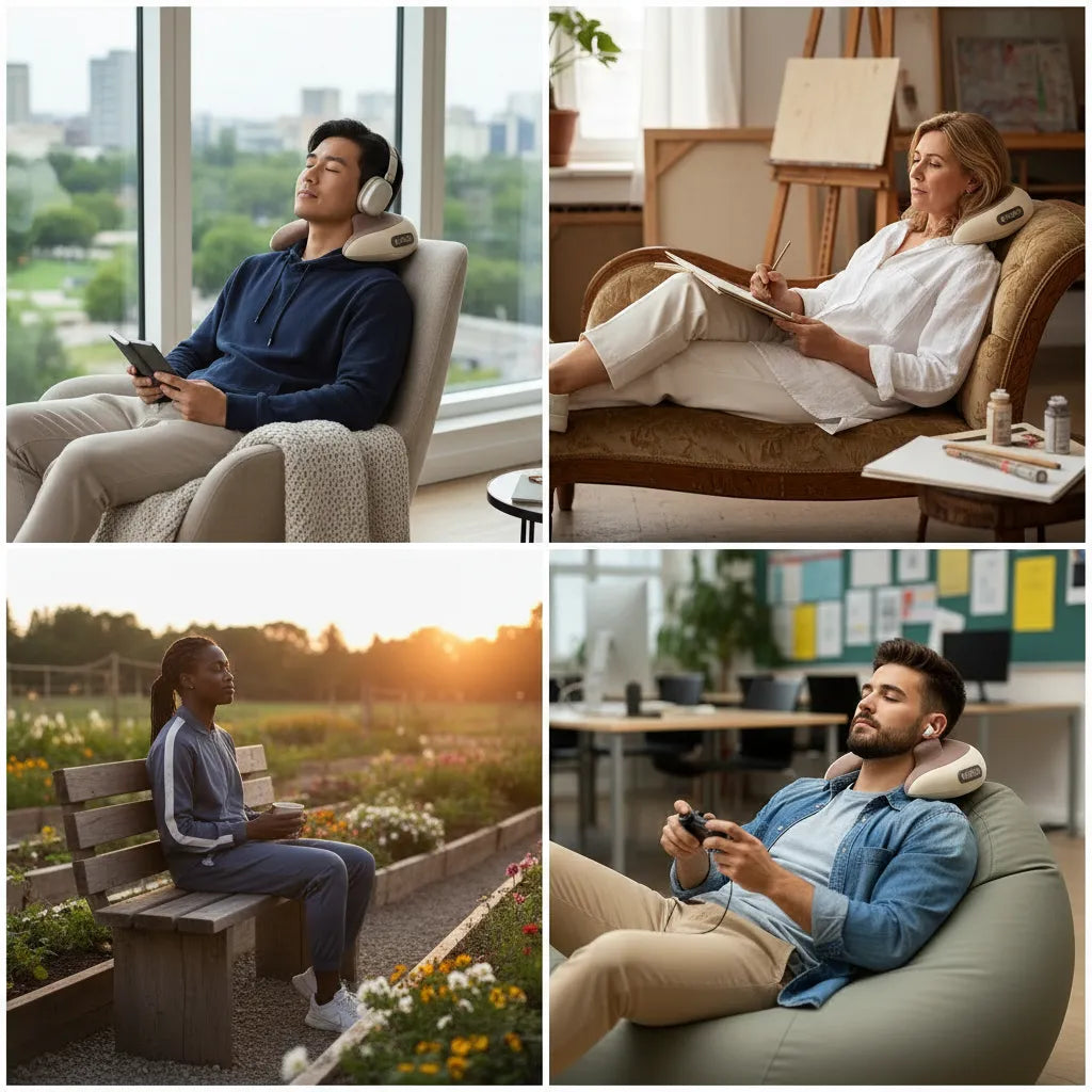 Choose focused, neck-first pressure or smooth, rhythmic rolling motions for full relaxation.
